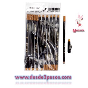 Paquete de 12 Lapiz Delineador de Madera Color NEGRO con SACAPUNTAS en tapa 18.5 cms de Largo