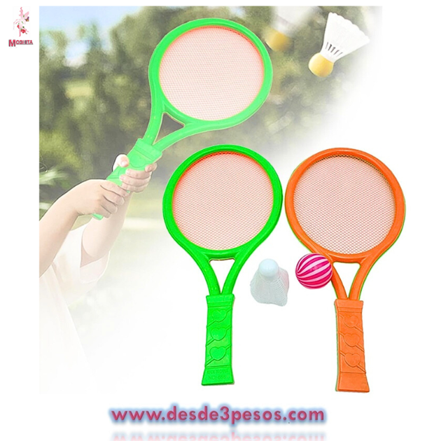 Par de Raquetas de Plastico con Gallito y Pelota 37 x 15 cm.