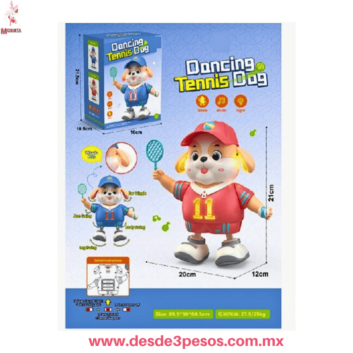 Perro Bailarin Musical con Luces LED Ocupa 3 pilas AA no incluidas 21 x 19 cm.