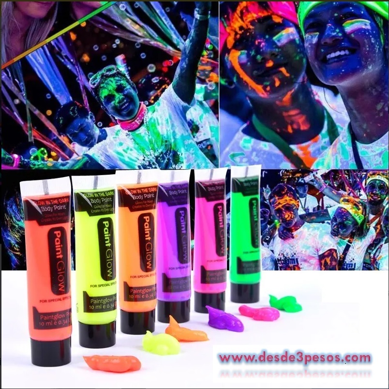 Pintura para el cuerpo y la cara que brilla en la oscuridad de color fluorescente 28.3 ml
