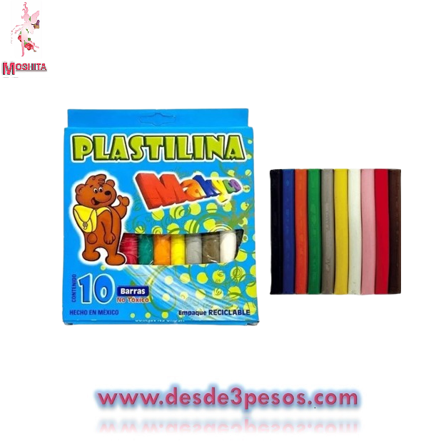 Plastilina Makyco con 10pza. 180g. NO TOXICO 12cm. Largo