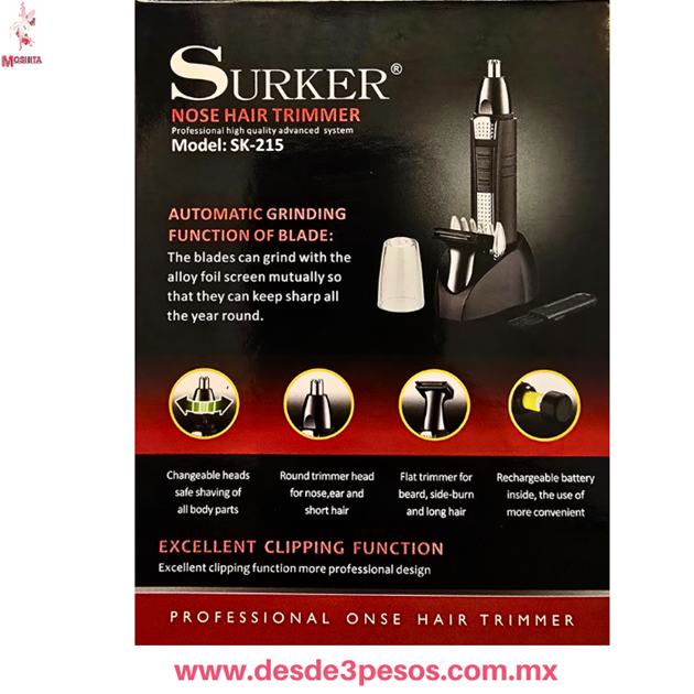 | Rasuradora Recargable para Pelo y Barba con Cabezales intercambiables, Marca Surker Mod. SK-215