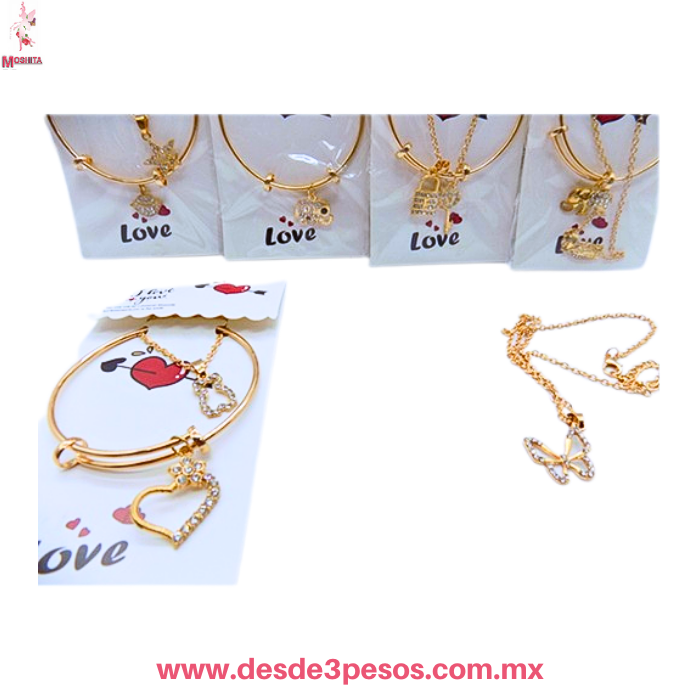 ?Dale un toque de brillo y elegancia a tu look diario! ? ?Buscas el detalle perfecto para resaltar tu estilo o para sorprender a alguien especial? Este hermoso conjunto de Pulsera tipo Brazalete y Collar es la combinaci?n ideal entre ternura, brillo y sofisticaci?n. ?? ?? ?Por qu? te encantar? este set? Dise?os con Significado: Elige el motivo que m?s conecte contigo; desde la libertad de la mariposa, la suerte del elefante, hasta el amor eterno del coraz?n y el osito. ???? Brillo Irresistible: Cada dije est? delicadamente decorado con cristales brillantes que capturan la luz en cada movimiento, asegurando que no pases desapercibida. ?? Calidad y Estilo: Acabado en un tono dorado radiante, dise?ado para ser duradero, ligero y muy c?modo de usar durante todo el d?a. ?? Ajuste Perfecto: La pulsera cuenta con un sistema ajustable (expandible) que se adapta a cualquier tama?o de mu?eca con facilidad. ??