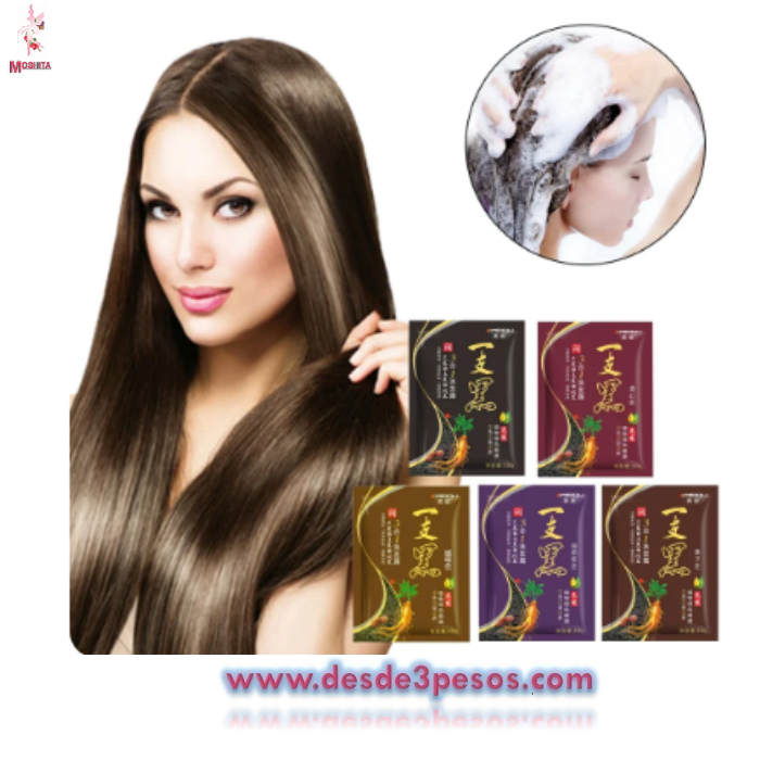 Shampoo Tinte Instantáneo 15 minutos Cubre Canas Jengibre 7 tonos 30g.