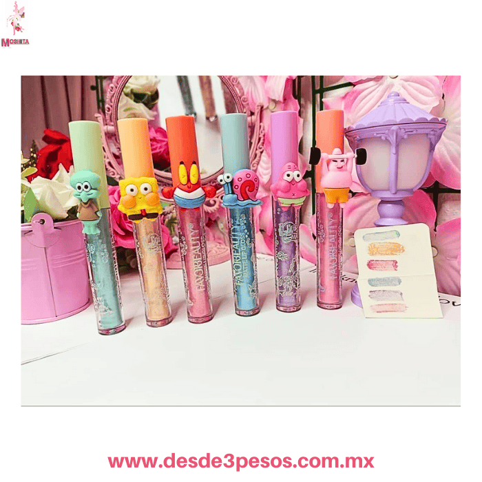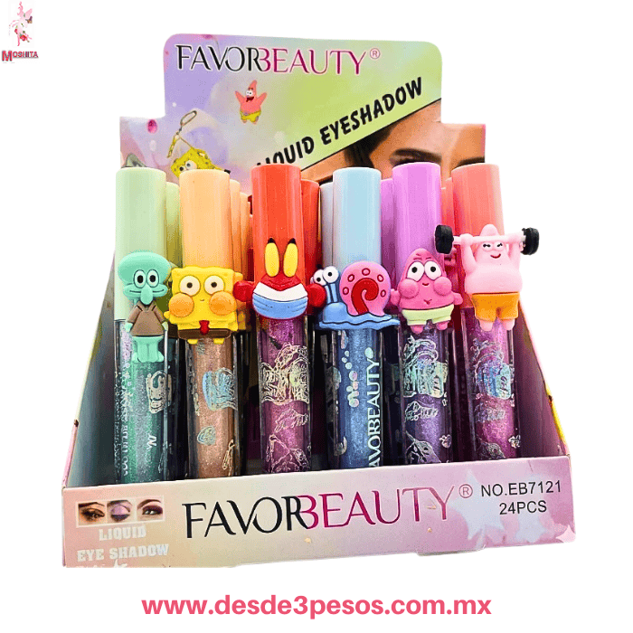 Sombra Líquida FAVOR BEAUTY en Presentacion de Bob Esponja 6 tonos 12 x 2 cm.