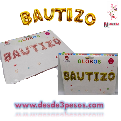 Tira De globos metalicos de BAUTIZO 30 X 42cm. C/letra Aprox. En color