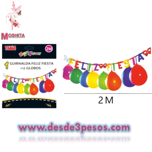 Tira de Banderin FELIZ FIESTA 2 M. +12 Globos
