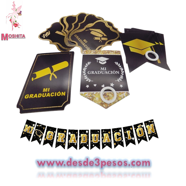 Tira de Banderin con la frase de MI GRADUACION 1.50cm. De largo 4 modelos diferentes como foto