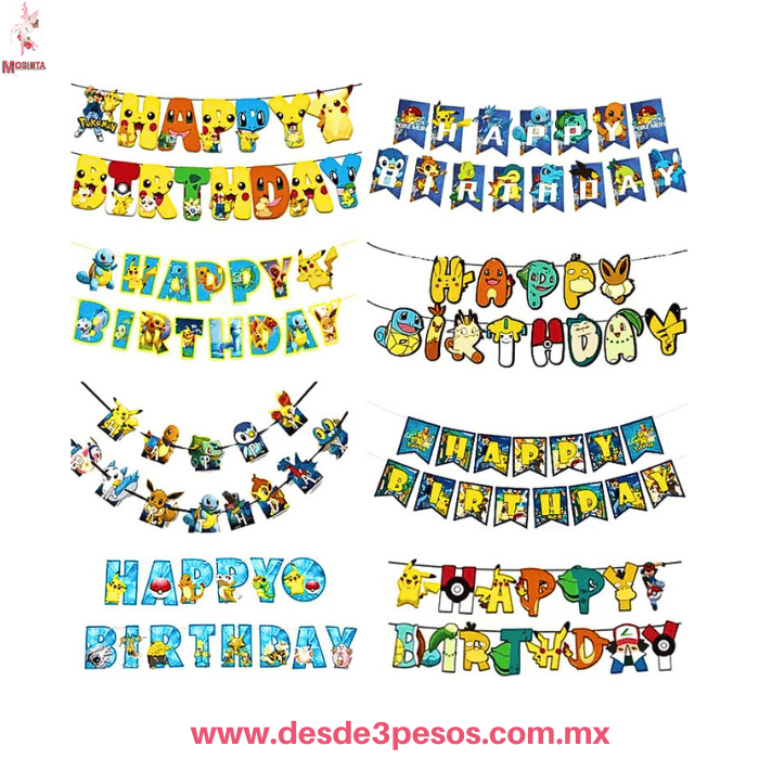 Tira de Banderin de Feliz Cumpleaños Diseñado con Personajes 18 x 12 cm varios modelos