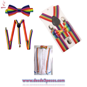 Tirantes ajustables para hombre Y corbatín de Arcoiris LGBT, unisex elástico